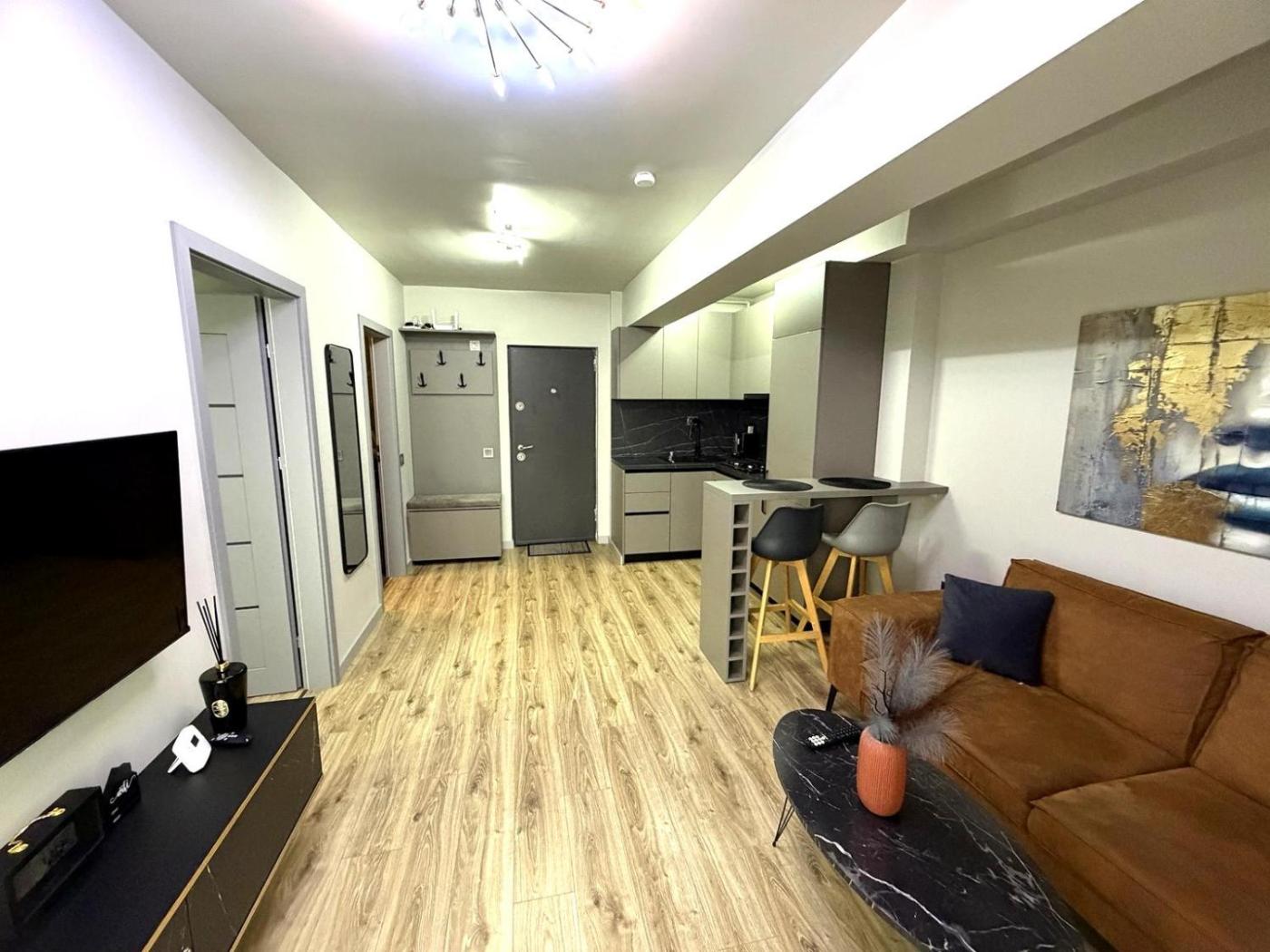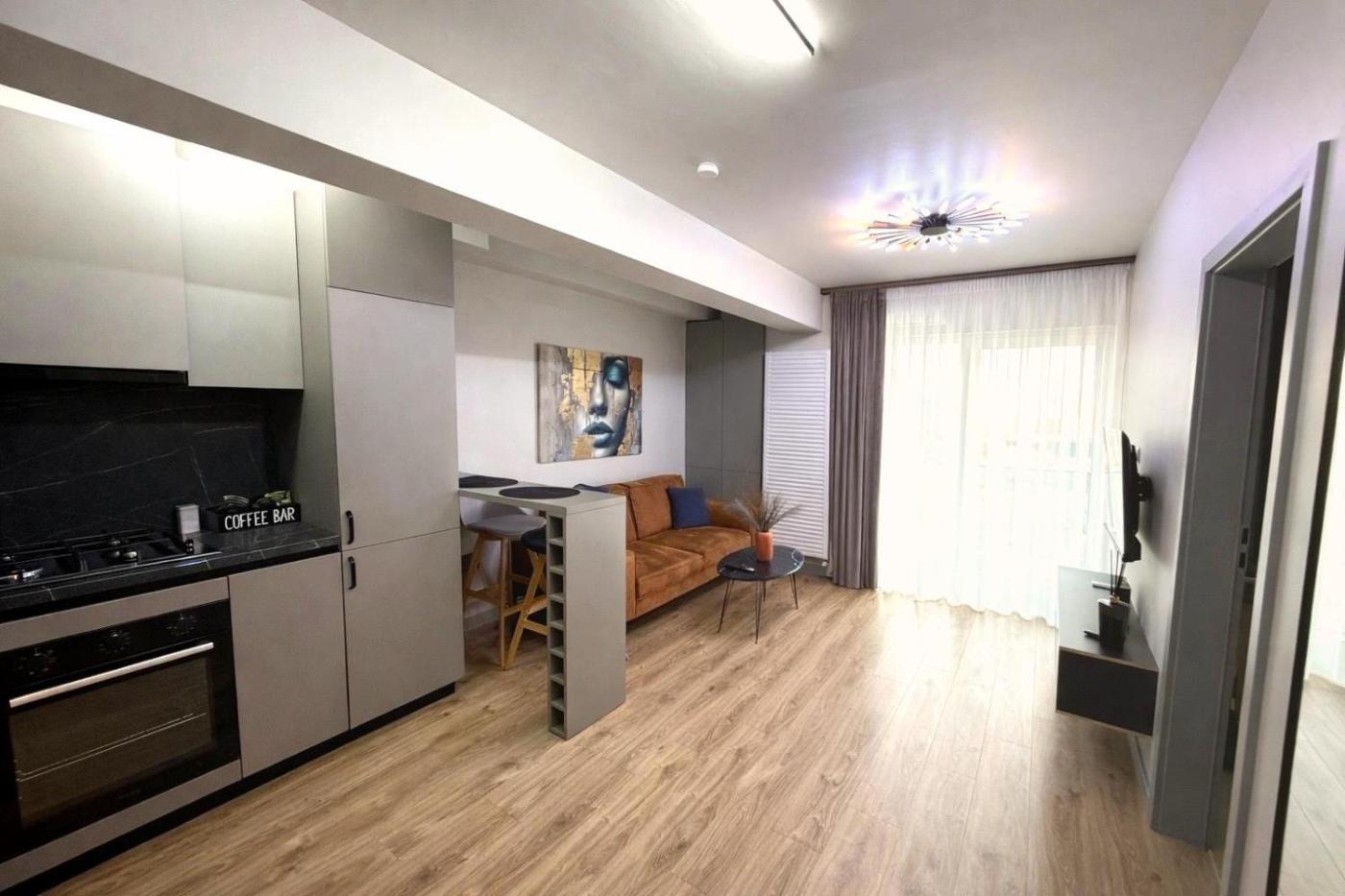 Deluxe One-Bedroom Apartment. This apartment includes 1 living room, 1 separate bedroom and 1 bathroom with a bath and free toiletries. In the well-equipped kitchen, guests will find a refrigerator, kitchenware, an oven and a tea and coffee maker. This air-conditioned apartment consists of a dining area, a flat-screen TV with satellite channels a washing machine and a balcony. The unit has 1 bed.